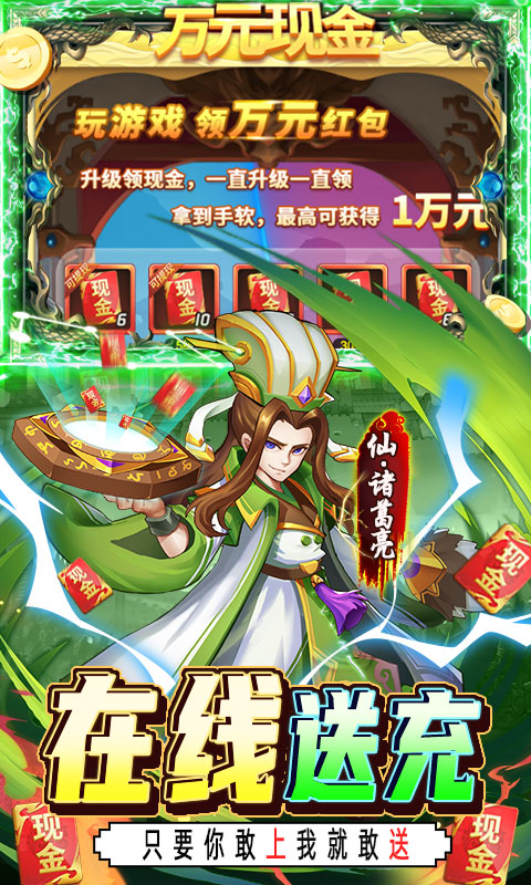 ★线下充值返利,超多元宝领到爆,线下豪华礼包,绝世神将天天抽,打关推图势如破竹!!!月卡福利拿不停,海量元宝天天领!!!三国绝神将齐聚,阵容任你搭配!!!全红神将免费抽!助你一统三国!