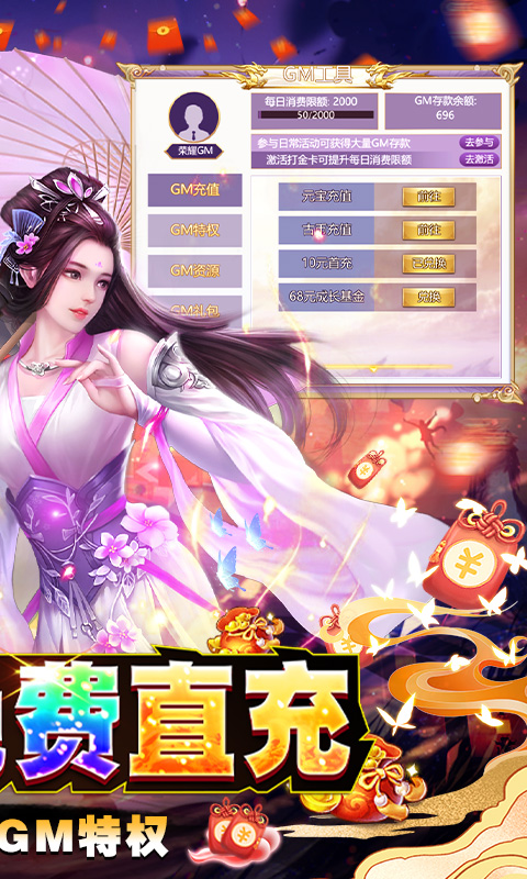 ★GM工具免费解锁满阶坐骑,无限铜币、无限元宝、直购礼包、68元投资基金