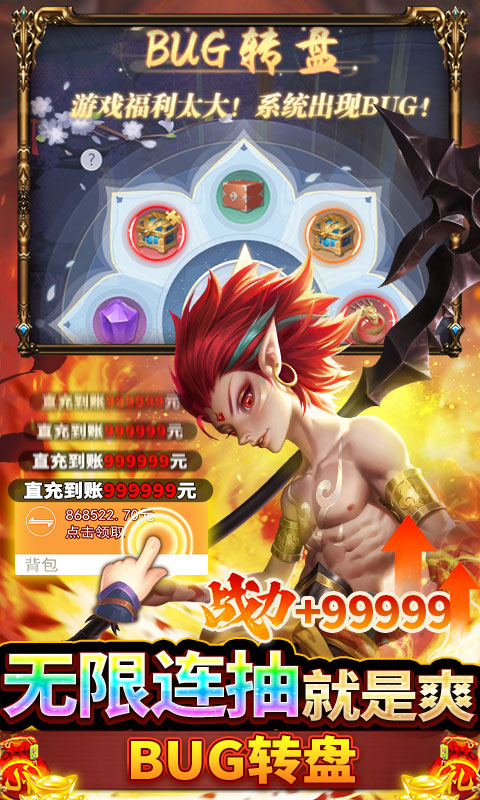 ★在线福利:每日在线免费抽BUG转盘,每日保底1000连抽,抽到手都停不下来,满屏道具白给就是爽!