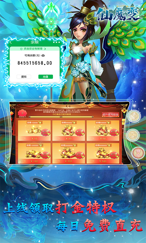 ★后缀说明:上线送免费打金特权,每日打到充值额度,在免费充值功能中免费充值元宝