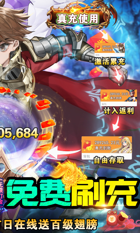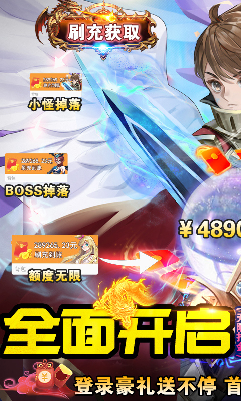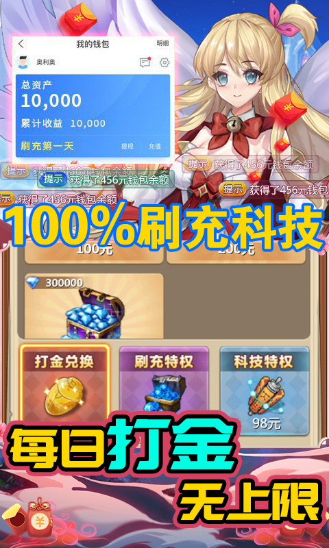 ★版本特色:全新刷充科技,极速打金无上限!全方位打金,挂机,闯关,刷充BOSS均掉落直充币,瞬间帮你通过填满直充钱包。