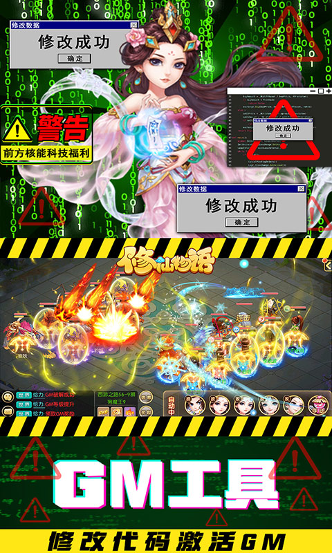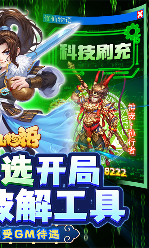 《修仙物语-GM科技刷充》GM开局自选福利,不同入口不一样的起点,最低可免费领取SVIP1、20W元宝、限定神兽哮天犬和永久炫酷时装;最高可直升svip7,还有神兽冰晶凤凰和时装“永结同心”,成长快人一步,策划强力推荐。再送GM破解工具,使用后可以获得GM经验,每天都可以使用一次,免费破解升满GM等级,零氪一样享受GM待遇。