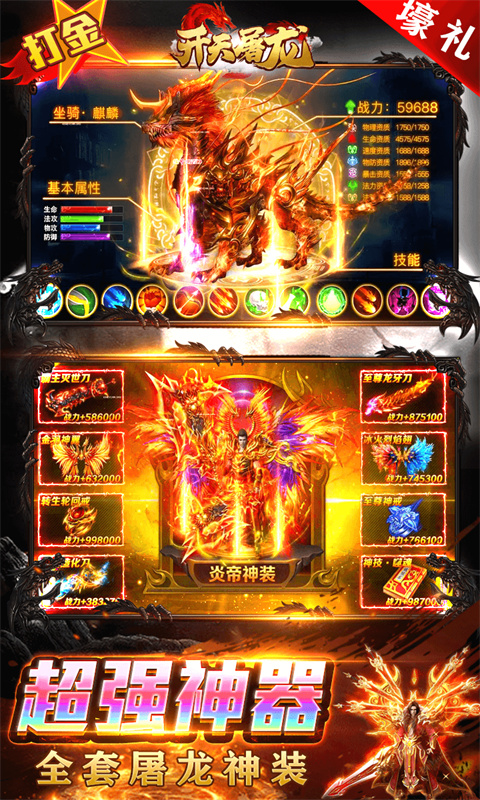 ★超强神器:冲级奖励绝品时装,更有全套屠龙神装备,每日送大量神器结晶,助力打造最强神器