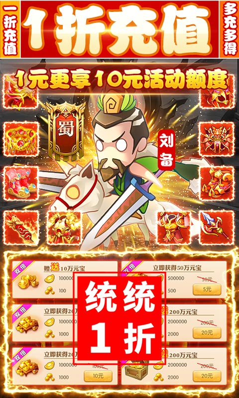 ★破解充值激活后可免费充值,1折充值享十倍活动额度,激活游戏内所有累充活动和每日元宝返利;
