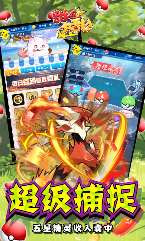 ★首充可获得强力五星精灵!每日签到领豪礼,送千抽超级球!让你轻松获得五星萌宠精灵,助你组建理想阵容!