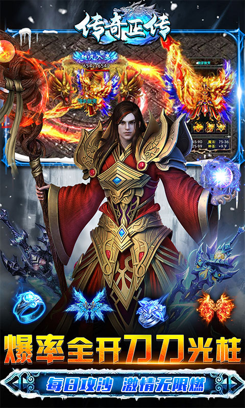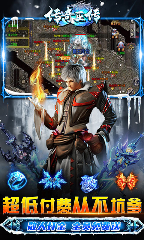 《传奇正传-冰雪爆充值》1:1还原经典端游,网吧通宵都要来玩的传奇手游。无团队,无暗坑,低消费,无隐藏,良心的手游!全新版本,新颖玩法,绚丽多彩,花最少的钱,体验最大的激情!主要玩法以升级、爆装、攻沙为核心,实现自由交易、一键回收等真实的传奇精彩玩法!喜欢冰雪复古玩法的玩家绝不能错过哦!