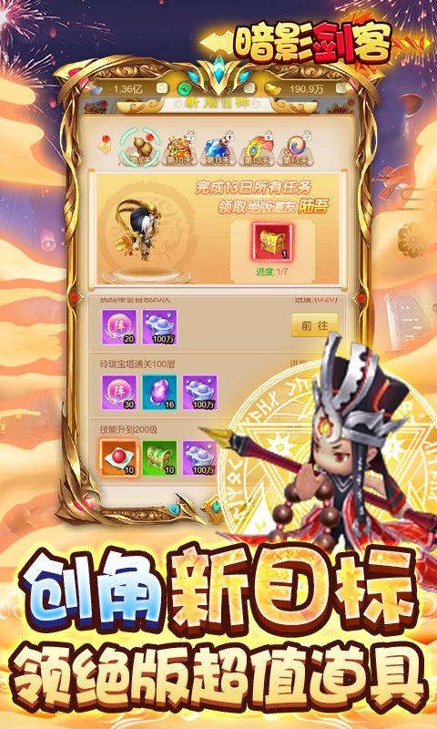 《暗影剑客-无限仙玉》是一款Q版挂机回合游戏,传统的仙剑故事剧情搭配精美2DQ版人物设计,打造精品回合制经典!玩家在游戏内可与酷炫坐骑潇洒共游三界,多种多样的经典回合玩法拥有无穷乐趣!