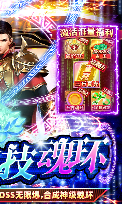 ★万古魂环系统,打boss掉落魂环,可通过合成获得所有级别的魂环,装备魂环可激活刀刀割裂、攻速叠加、爆率加成等等尊享属性;