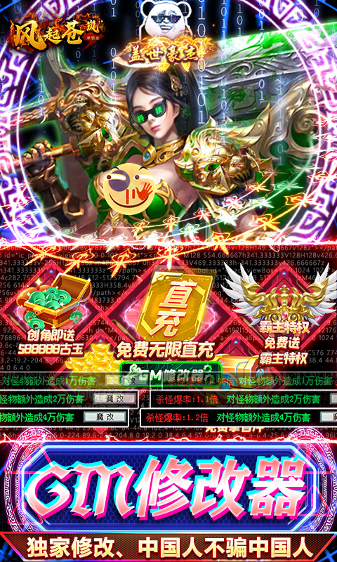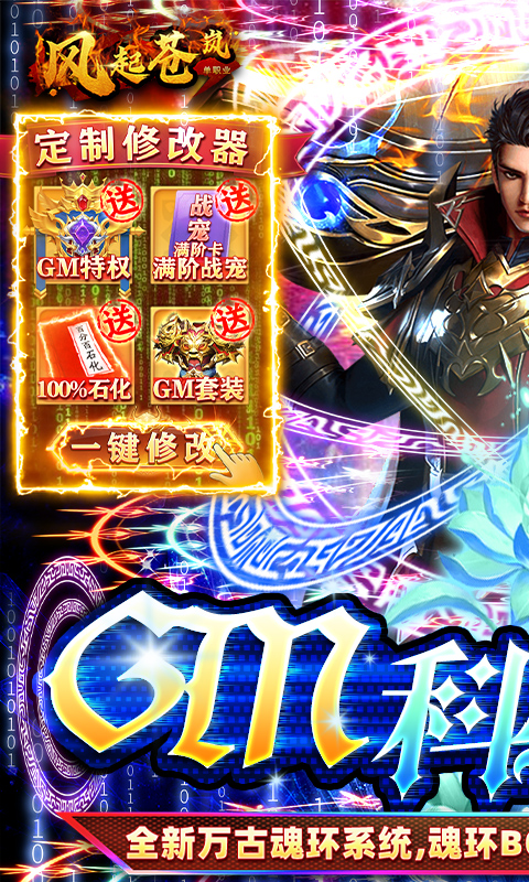 ★创角即送GM修改器,真正的黑科技,可在修改器内激活GM商城,可获取满阶战宠、100%战宠石化,更有GM套装可领;