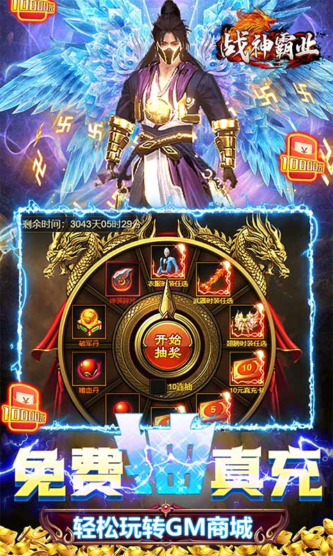 《战神霸业-GM科技提充》是一款四职业经典传奇动作手游!上线送GM特权,免费开启GM指令,每日通过完成任务可获得真实充值,免费提取真实充值额度!每日登录送真充卡,轻轻松松做土豪!全图爆真实充值,根本不需要充值!绝对白嫖福利版本、全部免费无限送!福利全新升级,千倍投资,永久年卡超值豪礼领不停!快唤回曾经的兄弟们一起战斗吧!荣耀归来,再创传奇!