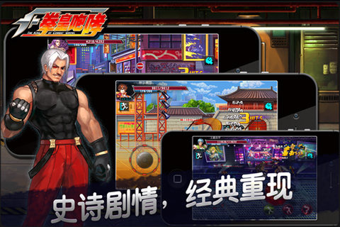 《拳皇咆哮》是一款以拳皇为背景的横版动作角色扮演类网络游戏。玩家进入游戏将去到拳皇的世界,成为一名神器守护者。为了守护世界,击败幕后黑手,玩家将与邪恶的卢卡尔、高尼茨、大蛇等各种拳皇经典BOSS进行战