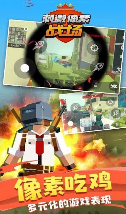 刺激像素战场是一款沙盒风格的射击枪战游戏。在这款游戏中玩家们将会尝试一次不一样风格的吃鸡。你有想过你的战士们都变成《我的世界》风格的样子吗?虽然建模之类的没有那么真实了,但是实际上手操作起来还是很优秀的,快来体验更加自由的射击冒险吧