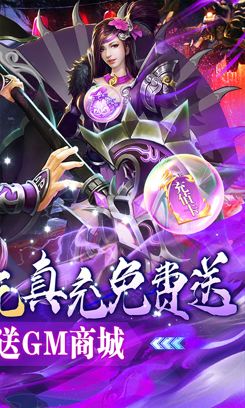 ★绑定元宝*1000万、铜钱*1000万、百连抽、称号:免费万元真充