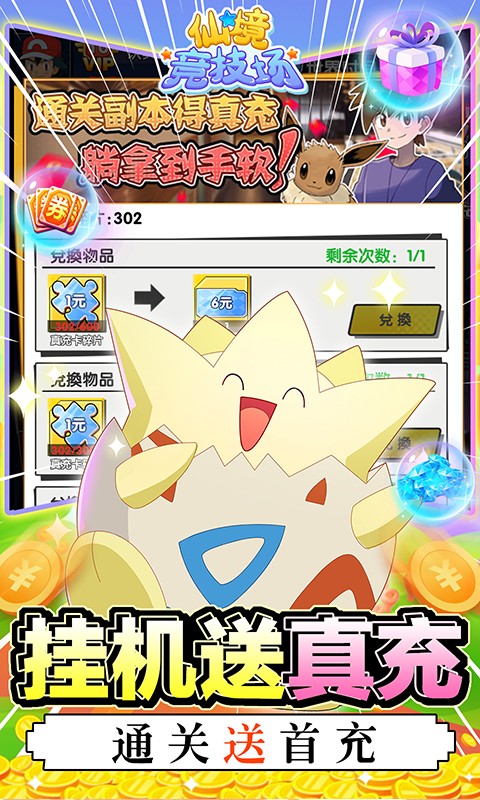 《仙境竞技场-送千抽GM》是一款宠物小精灵题材的卡牌战斗游戏,以收集养成玩法为核心。福利度空前,上线不仅送金币188888,彩钻18888,还送千元真充卡。挂机刷本还送无限真充!游戏送千抽扭蛋,各种珍惜小精灵等你来抽,下个欧皇就是你!游戏画面精巧,完美还原特色造型与技能,炫酷的战斗特效。轻松的挂机养成玩法,让你解放双手,毫不费力即可收集自己心仪的小精灵。此外,游戏还为喜爱精灵战斗的玩家打造了对战区域,快带着你培养的强力精灵横扫全场吧!