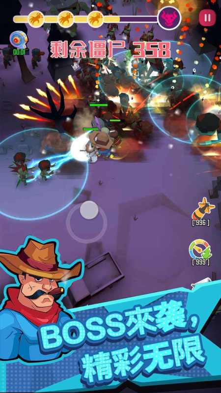 幸存者小队勇敢是一款以幸存者小队为元素设计的射击类游戏,在游戏中玩家们需要控制自己的幸存者小队来完成各种各样的战斗关卡挑战,在这些关卡中你会遇到非常多的僵尸,所以你要充分利用手中的武器来消灭所有的僵尸,这样才能够继续前进,并且还可以获得奖励,以此来更好地面对boss哦!