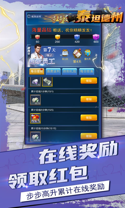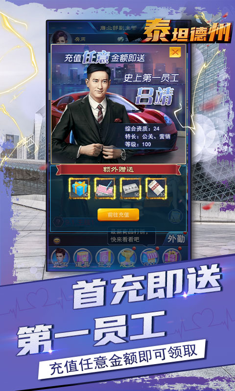《泰坦德州-红包天天送》是一款商业经营养成手游,游戏以主人公第一视觉生动呈现,带领玩家叱咤商业风云。