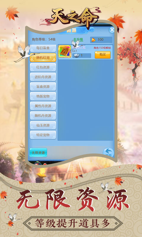 《天之命-资源买断》是一款Q版回合制游戏,精美2D Q版人物设计,搭配传统西游故事剧情,实力打造精品回合制经典!酷炫坐骑共同潇洒三界,独有万千道具自由回收,多样经典回合玩法无穷乐趣!