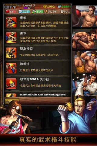 《格斗之城》是一款风格非常怀旧的经典类格斗游戏,在电视里面看得很多的剧情就是某某日本道馆被挑战什么的,在这里,你来做一次陈真,来挑战这些把“”挂嘴边的人。