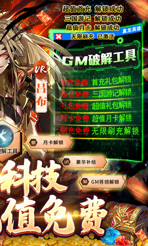★后缀说明:GM破解工具,开局激活破解工具,首充,礼包,基金,刷充等活动免费激活
