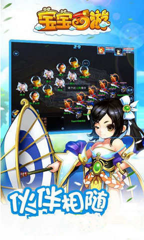 《宝宝西游》是2015回合制精品MMORPG手游大作,游戏设置六大角色、九大门派!盛世大唐,恢弘世界,炫酷技能,想战就战,再现逍遥生、剑侠客等脍炙人口的经典角色,糅合装备打造鉴定、宠物洗炼、帮派混战、野外挖宝、帮派跑商等游戏玩法,并新增实时竞技场比武、伙伴参战、炼丹炉等新功能。