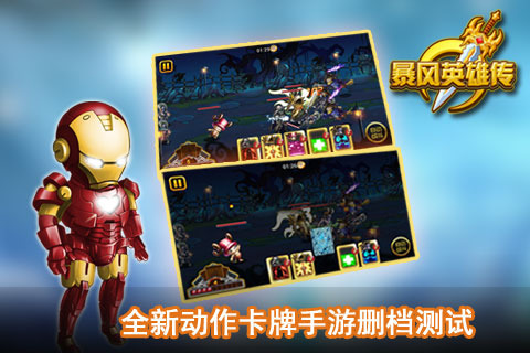 《暴风英雄传》凝聚国内顶尖开发实力,游戏集结了大量耳熟能详的经典英雄角色,丰富华丽的技能,采用技能卡牌的战斗方式,英雄以Q版形象制作,动态的进入战场,玩家可以实时控制英雄释放技能。并且玩家可以根据自己喜好,随心搭配,打造专属自己的最强战队。游戏在基础玩法上更添加了“无双”玩法和国战玩法。玩家可以操作英雄享受一骑当千的割草快感,也可以参加国战,体验万人夺城的争霸刺激。