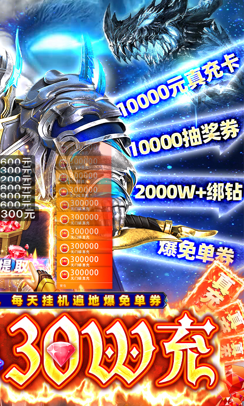 ★首日在线累计送10000元真充卡、转盘抽奖券10000抽、12阶坐骑