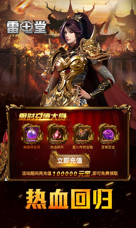 《雷电堂-开局千充GM》是一款多人在线经典RPG手游,上线即送VIP,体验海量GM福利,超多boss任你刷,登录奖励等你来拿,每日签到领取超多豪礼,这里是散人天堂!