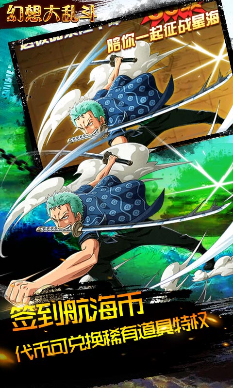 《幻想大乱斗-GM航海代币》上线送至尊GM特权,千万贝利,千万钻石,千元真充,免费领取,航海代币新玩法,开启无限资源,GM商城,资源无限领,豪华道具任意搭配,轻松休闲打造畅快的游戏体验感,打造乱斗的世界,拥有独特而又专属的技能,与航海大冒险家共同开启ONEPIECE的海贼王宝藏