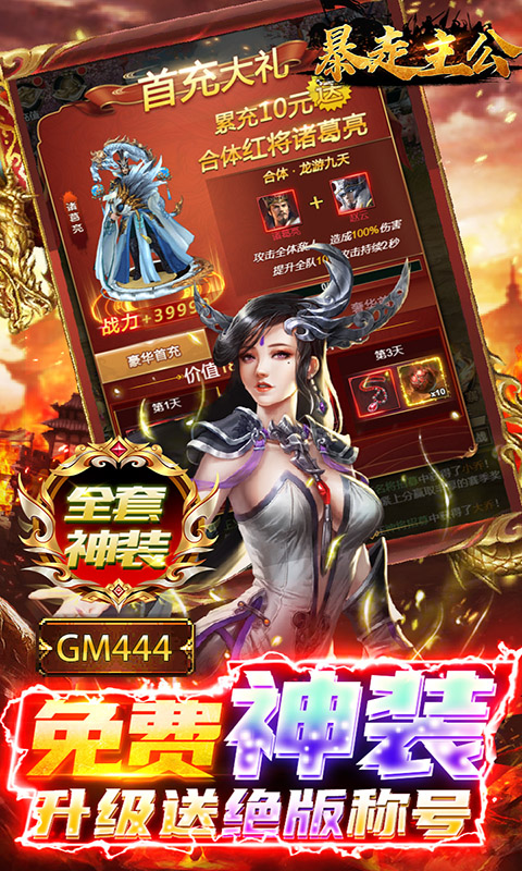 ★上线福利:上线送GM1+1亿金币+88888元宝+两千元红包