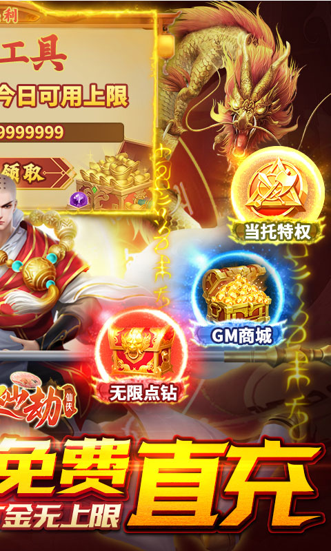 ★击杀BOSS免费送仙充卡,仙充充值后可免费获得GM币,零氪也能轻松玩转GM商城!