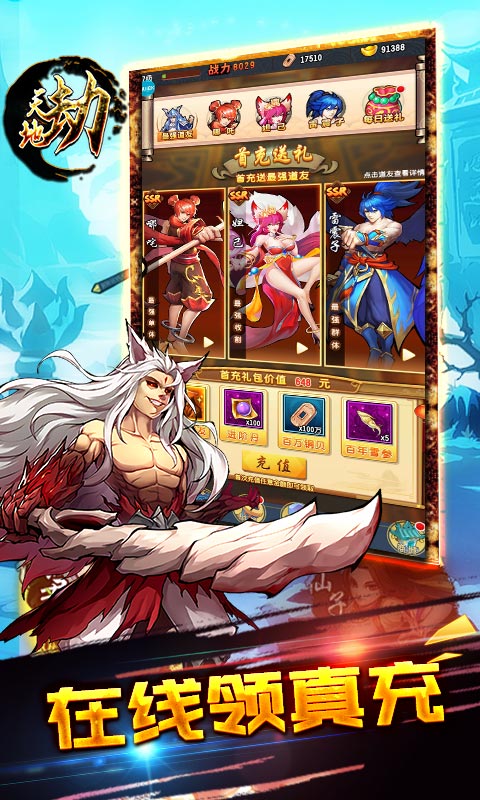 《天地劫-爽送真充》是一款竖版封神题材游戏。以恢宏的三界之战为背景,讲述少年执掌封神榜,开启封神之路的热血故事。上线送满V(VIP15),威猛神将助力封神,逆天法宝横扫劲敌,策略挑战BOSS,给你不一样的封神之战。