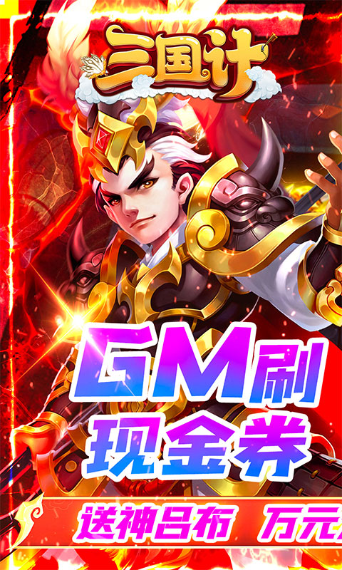 《三国计-GM刷现金券》正版授权三国回合制手游,GM刷充现金券,免费刷满红神将!全新版本福利来袭:开局赠送GM1特权,登陆送神将,免费送3万充!打造前所未有的战斗回合体验!人气大作轻松上手,战马飞驰、三国名将,巾帼英雄豪情助战!更有上古灵兽强力助阵,突破极限激发最强战力,让你体验全新刺激的三国之旅!
