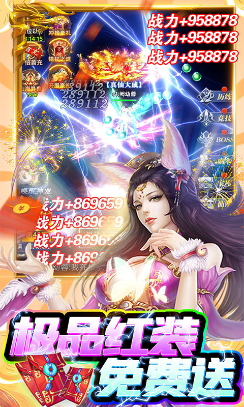 ★激活全套神装;送真充为创角后在背包物品中直接获得价值千元的真充券;