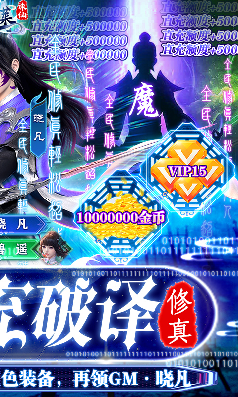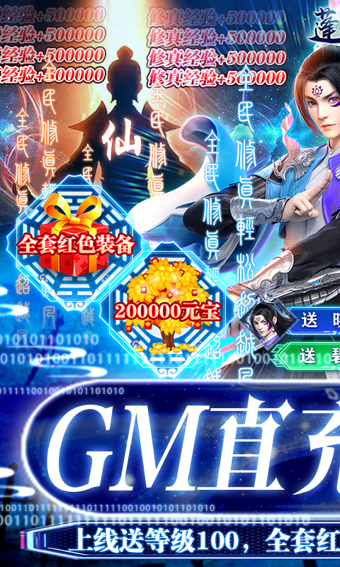 《蓬莱-GM直充破译修真》是一款3DMMOPRG游戏,超多福利上线即送,上线送等级直接飙升100级,200000元宝,10000000金币,200000绑定元宝,VIP15,一阶红色装备饰品礼包,一阶红色装备礼包,直接送一套红色装备,升级轻轻松松;GM送福轻松拿下青云志主角团晓凡、碧遥、小荠等其中一个超凡伙伴,还可以;玩家沉浸式体验扮演青云门、天音、鬼王宗这3种门派的任意一种,与张小凡青云志等主人公一同去粉碎鬼王阴谋。玩家们以法宝、伙伴等战斗培养元素,并引入七脉会武、兽妖攻城、战场等PVP玩法;助力晓凡挫败鬼王复活兽神、颠覆青云阴谋。
