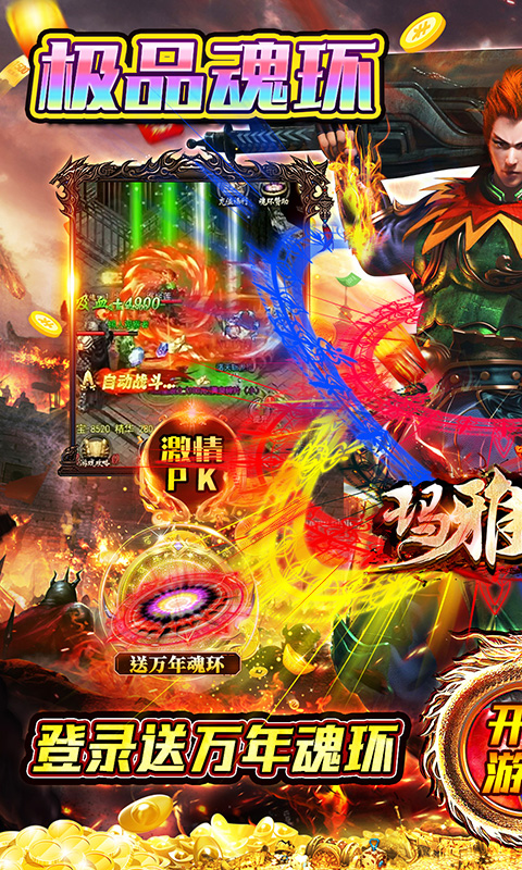 《玛雅战纪-送万年魂环》简单粗暴上线就送万年级别魂环,所有充值货币都可以【免费打】,一切充值多了都没地方花!创角就送攻速斗笠,超高暴率,百万元宝回收,所有魂环赞助免费打、独家酷炫技能特效,刀刀光柱,刀刀烈火,开局一把刀,装备全靠爆。经典回忆!轻松升级爽不停,散人一包烟 激情一整天!