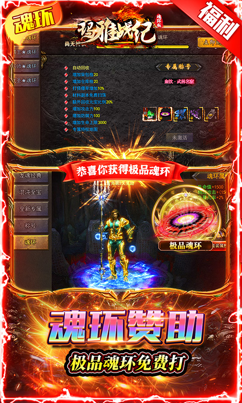★上线就送【万年极品魂环】,【超攻速斗笠】,极品属性称号,海量元宝
