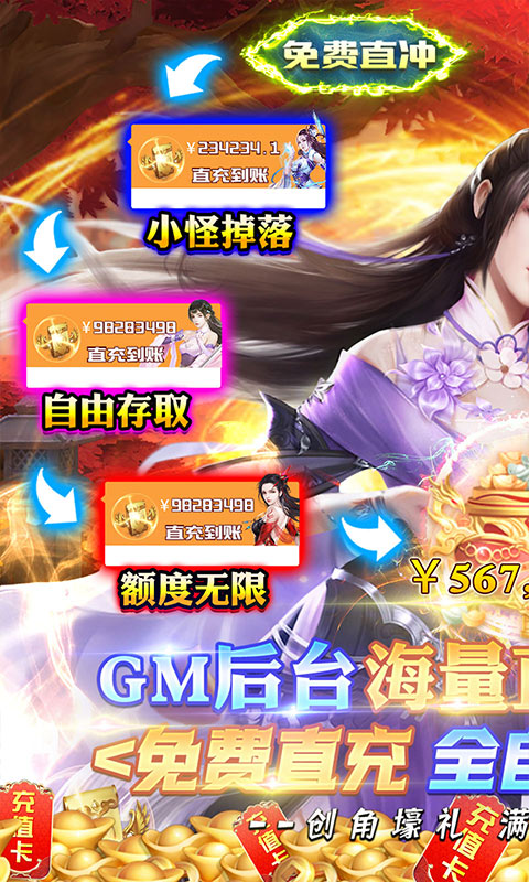 ★开局送直购币*8888,至尊称号,超值礼包,GM装备全部免费破解,钱包余额可直接兑换直购币!