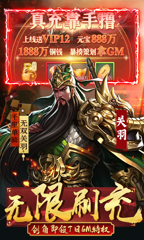 ★版本特色,上线爆揍策划拿免费点充特权,真充靠手速,保底30万真充任你狂撸,还爆GM商城解锁卡,GM商城全部可解锁!