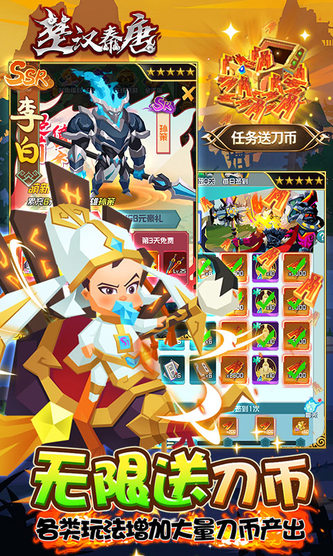 ★新增系统:系统各类玩法均增加刀币产出,让玩家一路爽买不停,更有各项充值返利活动,真实充值达到对应档位即可获得海量壕礼,还有专属区服冠名特权、专属定制称号