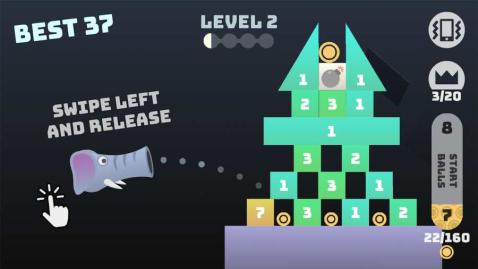 瞄准和开火!滑动手指来拍摄球,直到他们倒下轰炸塔。跳出你的球在每个块一定的次数打破它。你有多少塔可以摧毁?