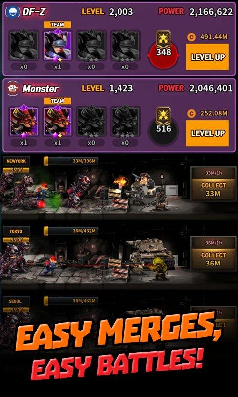 僵尸遇见僵尸,成为更强大的僵尸! 轻松享受僵尸合成(Merge)RPG! ◎游戏特色 ◆无限僵尸合成! 合成僵尸会让僵尸变得更强大! 不断出现新僵尸! ◆100%通关挑战! 5000个关门战场! 每周更新1000个关门! ◆易于合成,让我们轻松战斗! 合成自动化!战斗自动化! 通过突破系统快速加入战场! ◆放置类型的世界BOSS? !无限地牢? ! 突袭也,无限地牢也都可以放置! 各种放置玩法! ◆僵尸收藏!图鉴完成! 各种英雄和僵尸即使放置也能轻松获得! 收集新的僵尸来完成图鉴! ◆战略组合!强大的队伍! 自己的英雄!自己的僵尸组合! 用最好的组合来享受战略! ◐联系 ioigamesblc@gmail.com 提示 : 【说明】 使用足够的货币不减反增!