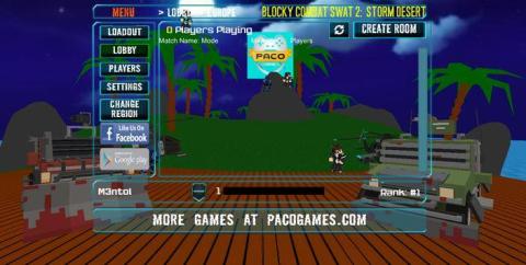 试着用超级强大的枪和车辆阻止斯瓦特,风暴沙漠是一个伟大的有趣的战斗。 你会发现直升机,汽车,枪和地图有着很棒的效果。 这个游戏非常适合和世界各地的朋友一起玩。 通过登录加入游戏或创建第一个新帐户以获得排名和解锁枪支和车辆,当您解锁车辆时,您将有更多的火力成为游戏中最好的玩家,加入大厅,你看,但首先检查 你的装载按钮,看看你将在比赛中玩什么枪,你也可以用你喜欢的地图创建自己的房间。