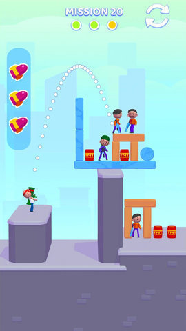 火箭筒基杜是一款以火箭筒为元素设计的射击类游戏,玩家们需要控制自己的游戏角色来完成各种各样的关卡挑战,在这些关卡中有着非常多的敌人,所以你需要充分利用火箭筒将关卡中所有的敌人全部消灭,这样才能够顺利地过关哦!游戏的玩法非常简单,但是却能够带给你无限的欢乐哦!