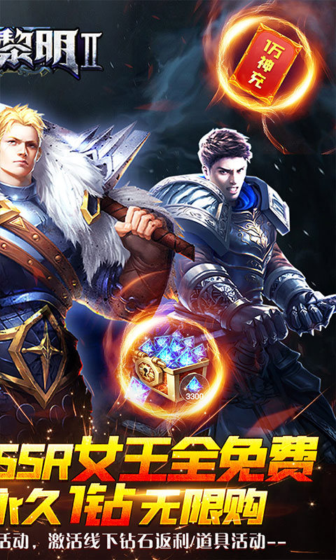 《暗黑黎明Ⅱ(GM女王全免)》是一款超燃魔幻巨制暗黑手游!传承正统续作,畅销榜TOP3,十亿国民喜爱的RPG手游!独家五大PK玩法,职业双天赋,史诗级暗黑魔幻巨作邀您来激战!!GM女王全免福利:永久每日签到无限领SSR橙品女王,免费白嫖满阶女王不是梦!GM送神真充:登录壕送10000元神充卡,激活游戏内累充,激活线下钻石返利+单日累充道具活动!终极福利版本:无限资源首次开放,无限金币创角即免费激活,钻石/神羽/经验 终身永久无限领!