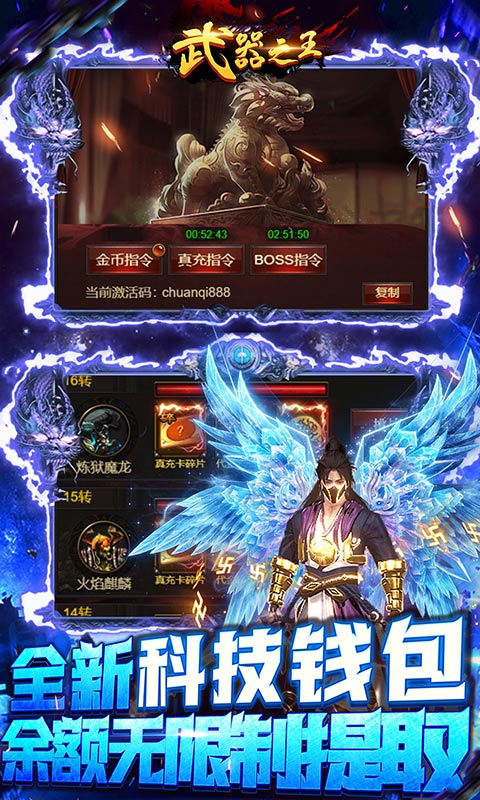 《武器之王(买断科技刷充)》是款全新的GM科技买断版福利传奇!上线送百万元宝、满级vip15,登录升级送万元充值卡,内置科技钱包,每日无限提取余额,福利送不停!酷炫动态时装,激活战法道买断特权就送!超级神装买断直升满阶!丰富的跨服玩法,无敌的福利,助您快速达到人生的巅峰!再战传奇!