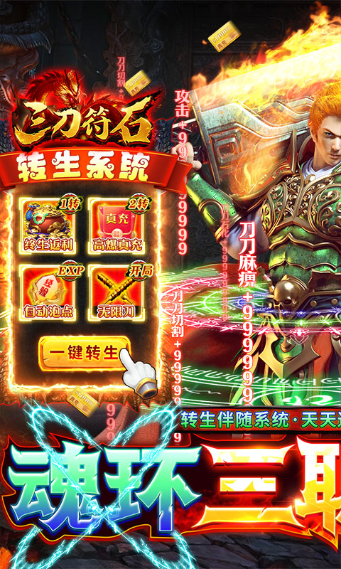 ★【转生系统】:1转开启终生返利,天天返充值,人人当大哥!2转开启全新打宝地图:王者峡谷,爆无限充值