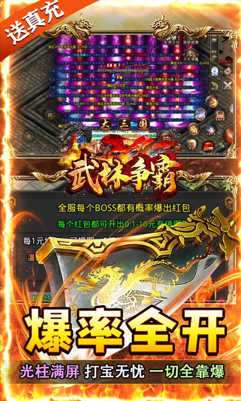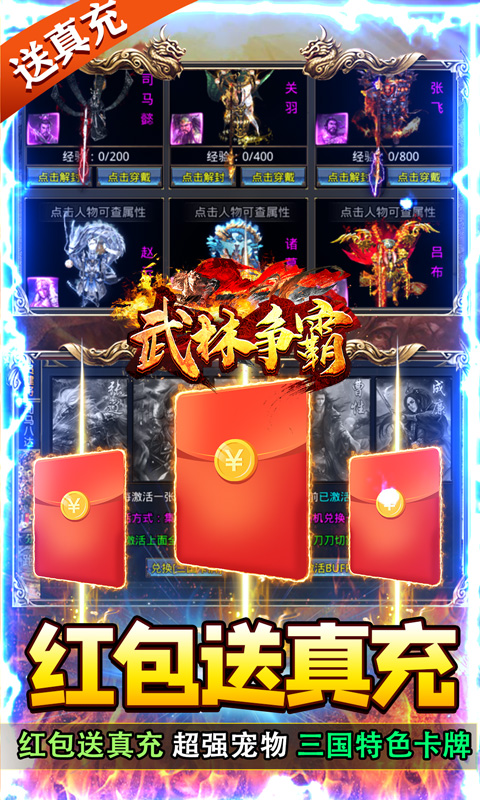 《武林争霸(三国魂环超变)》超变版本三国题材,开局就送新手福利!超高爆率!超强宠物!助你砍遍全图!神装合成,魂环附身,宠物追随,红包回收,全新地图,三国特色剧情玩法,切割神器,活动boss无限刷!准点攻沙,等你来战!全新三国版本来袭!还在等什么,快来加入吧!