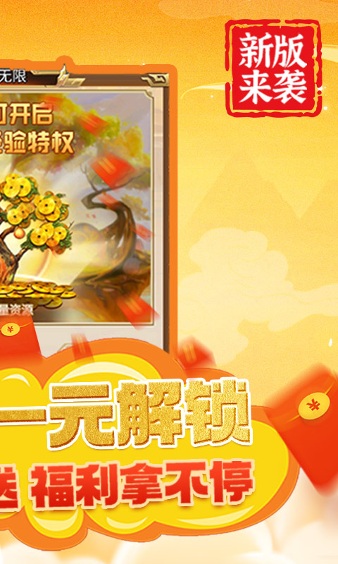 ★后缀说明:创角成功后即送GM3,即可看见游戏内带有无限资源商城与打金系统,激活后可以开启无限经验特权,无限铜币特权,无限装备等,统统仅需一元即可解锁。还有无限福袋等你来开启,每累计充值十元即可获得一次开启次数,你还在犹豫什么?真正的福利版本上线啦!!!