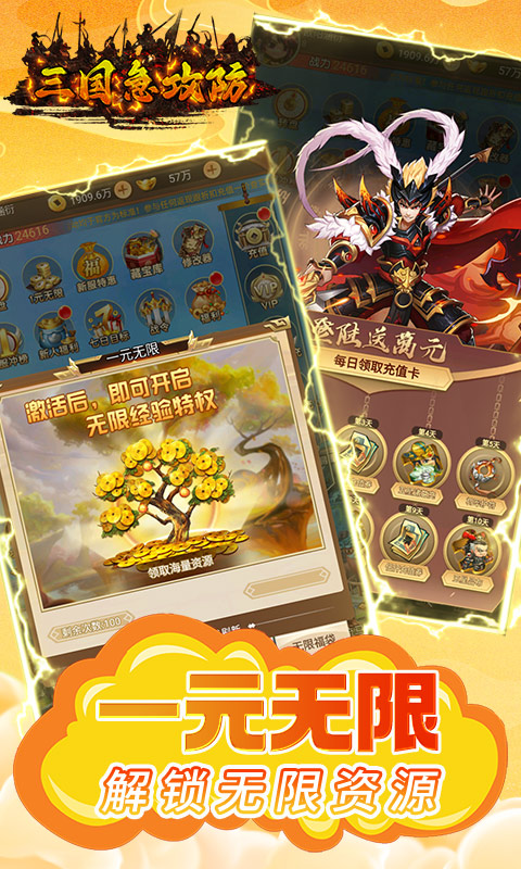 《三国急攻防(GM一元无限金)》是一块卡牌类三国手游,可以说是史上福利最强的版本啦!多种游戏玩法,全新体验上线!让你在游戏中不再枯燥!上线一元即可解锁超多无限资源福利,十星马超上线就送,带你征战三国,平定乱世,成为三国之巅霸主!
