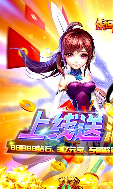 ★上线送满VIP,88888钻石,3亿元宝,专属定制称号,武将碎片*100,挖宝钥匙*50!